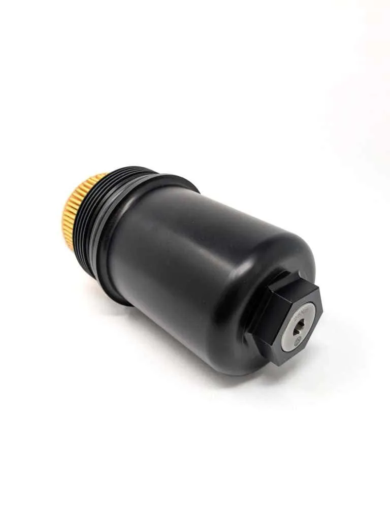 Integral magnet captures ferrous debris at the bypass to keep it from going back into the engine at cold start, as commonly happens with the stock filter housing.