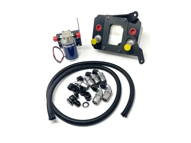 The BRS Cayman/Boxster 987.2 PDK Transmission Gear Oil Cooler kit is a direct bolt on plug and play kit using our oversized Porsche Cayenne Turbo oil to water heat exchanger made exclusively for LN Engineering. The remoted mounted 0.5 L capacity oil to water heat exchanger provides superior cooling compared to air to oil coolers commonly used that require substantial airflow routed to them to function properly. The kit includes oil cooler, 12V Mocal gear oil pump, custom brackets, hardware, Aeroquip hose, and fittings to add much needed cooling to your Porsche Boxster or Cayman gearbox.