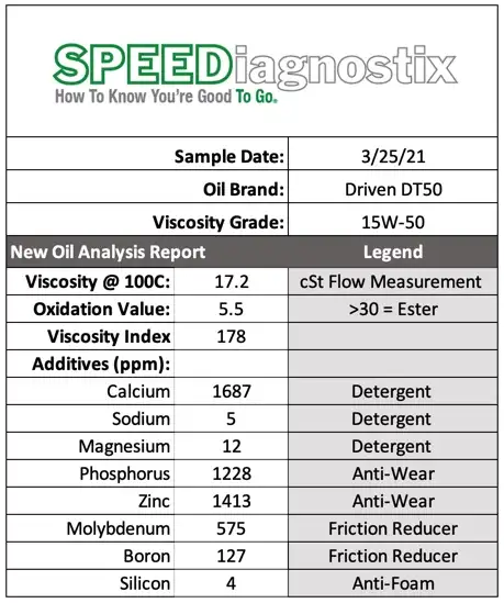 DT50 utilizes advanced mPAO synthtetic base oils to provide protection for high operating temperature turbocharged engines. Also ideal for Porsche and Volkswagen air-cooled and water-cooled engines. Compatible with E85 and water/methanol injection. Viscosity typical of 15W-50.