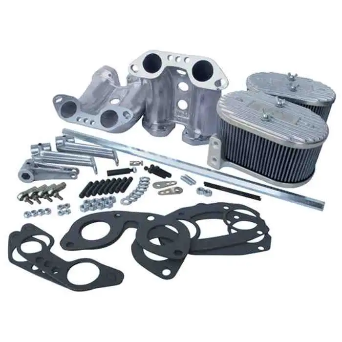Includes air filters and Porsche Style Linkage. Can be used with most 40, 44, and 48 IDF Webers and intake manifolds. Also fits Dellorto DRLA’s. Fits 914 & ’72+ Van