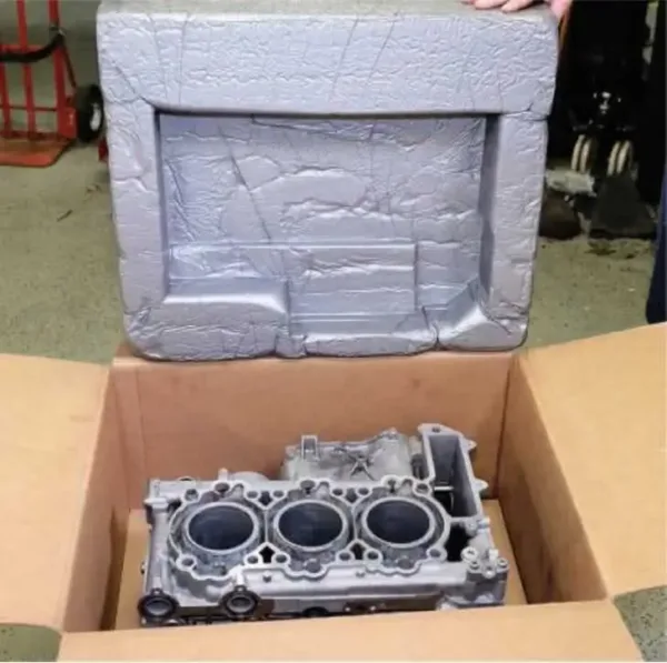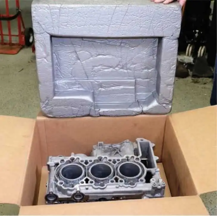A custom box with molded inserts to safely ship your Porsche engine block to LN Engineering.