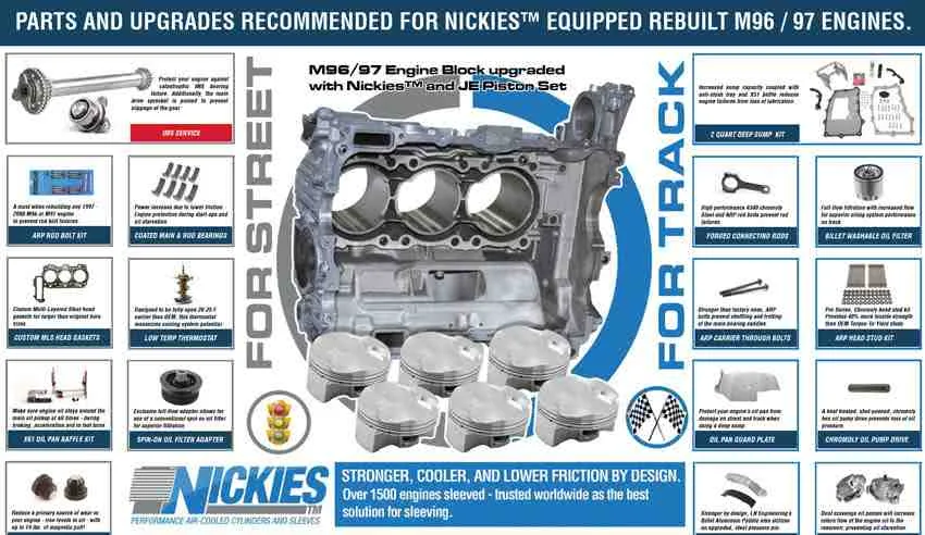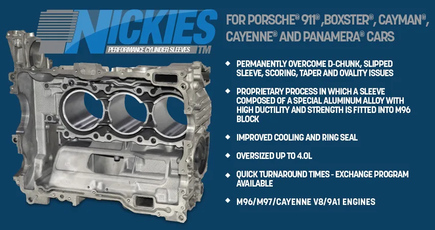 Nickies Engine Block Sleeving Solutions for Boxster, Cayman, and 911 models with M96/M97 Engines